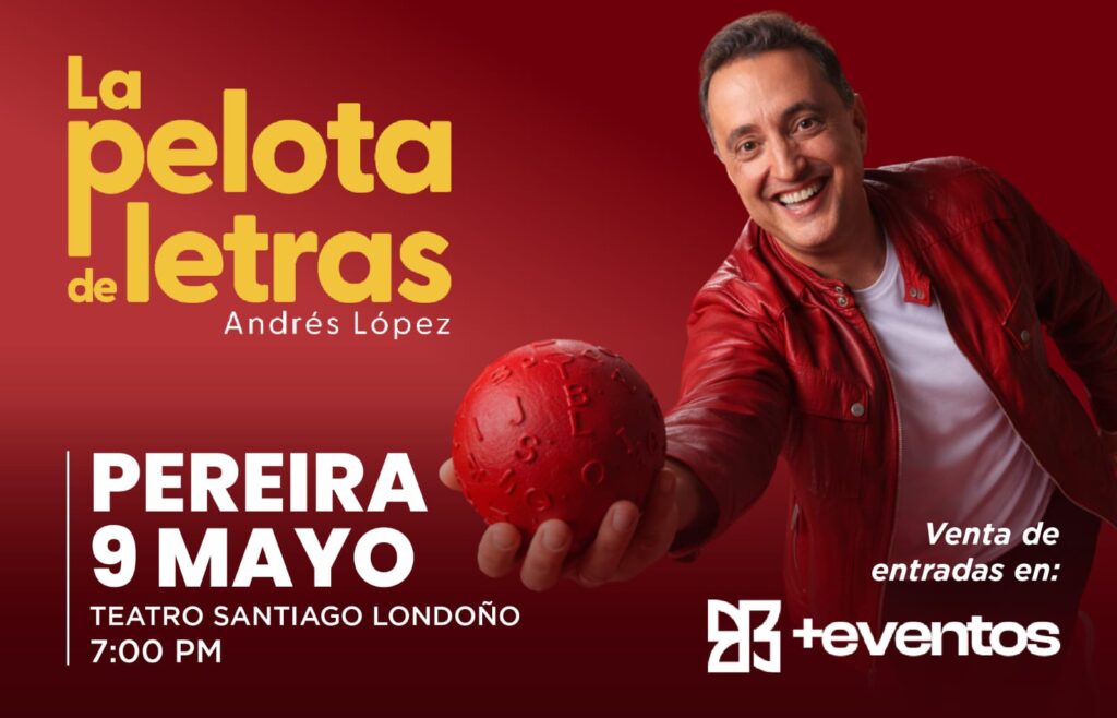 mayo 9, 2026 7:00 pm Pereira – Risaralda La pelota de letras es un show de comedia creado por Andrés López que retrata con humor la evolución de las generaciones colombianas desde los años 60 hasta los 2000. Con personajes familiares, anécdotas cotidianas y un estilo lleno de energía, el comediante logra hacer reír y reflexionar […]